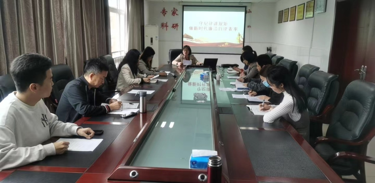 为进一步严明工作纪律,教育引导党员干部守纪律、讲规矩,2022年11月10日上午,皇冠hg8868老版本党委开展“守纪律、讲规矩”党风廉政主题教育学习。皇冠hg8868老版本党委委员,各支部书记、各部门科长参加了会议。