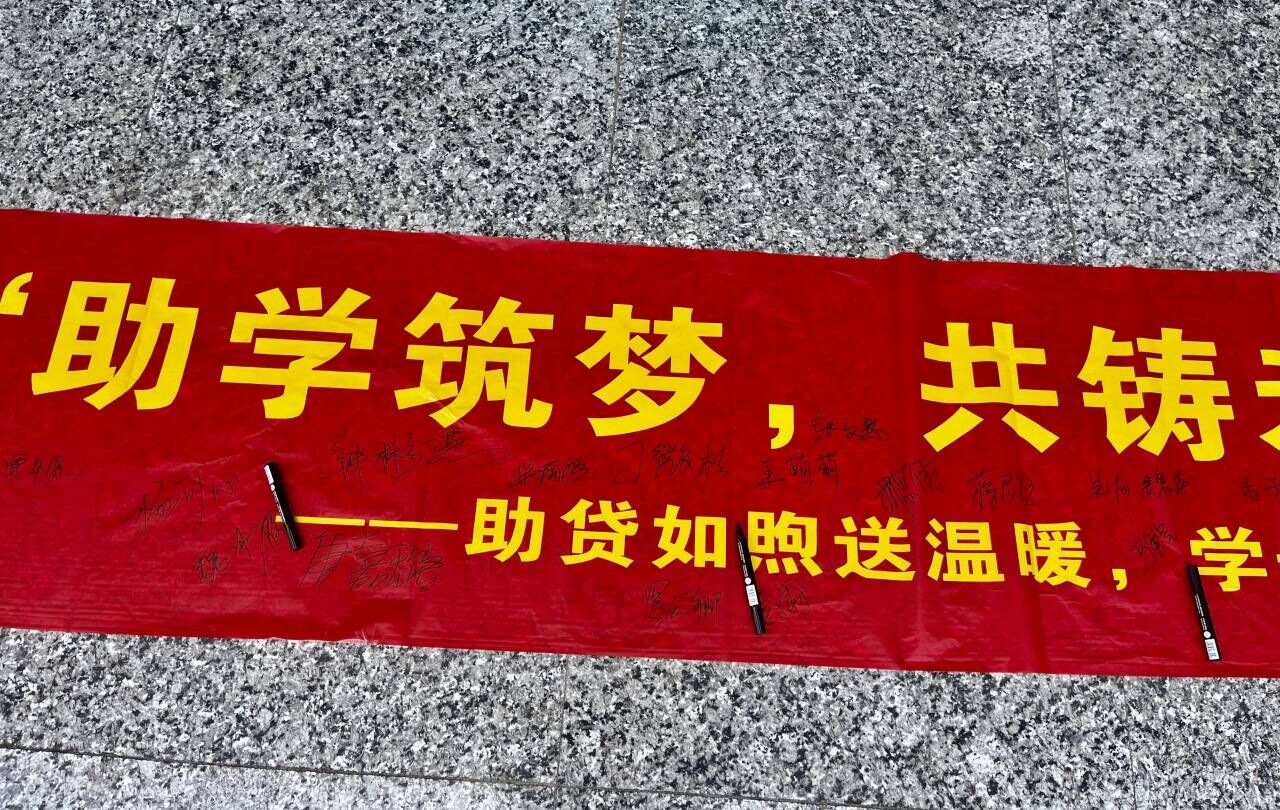 同学们依次在横幅上签下了自己的名字,表达了对国家资助政策的感激,也明确了作为新时代青年的责任感和使命感。助学贷款毕业确认签字仪式,向贷款毕业学生广泛宣传国家助学贷款及其他资助政策,讲述及时还款的重要性,普及征信、金融等相关知识,引导学生及时履行国家助学贷款合同,培养契约精神,提醒学生珍惜信用,按时还款。
